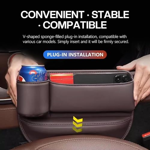 - ??3 in 1 Innovative Design?This innovative accessory perfectly fits the gap between your car seat and center console, preventing small items from accidentally falling into seat gaps.Besides It features a dedicated cup holder to hold drinks and a extra storage compartment to organize your phone, sunglasses, keys, coins, cards, wallet etc…