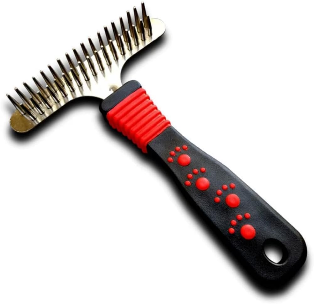 Professional-grade dog grooming comb made with strong,rounded teeth to gently remove tangles,loose fur,and dirt without hurting your pet’s skin.Ideal for all coat types,this comb promotes a healthy,shiny coat while making grooming sessions comfortable and stress-free for your furry friend.