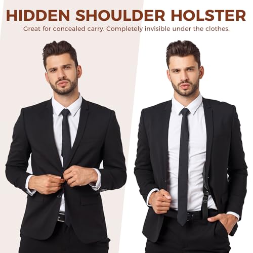 - Concealed Design: Agorizeo shoulder holster for concealed carry allows for a full range of motion without compromising safety. Wear it over a shirt or inside a jacket, and benefit from its discreet profile that prevents certain exposure risks. You can simply remove the bag with one hand and take out the gun, This feature is designed to facilitate quick access to the handgun.