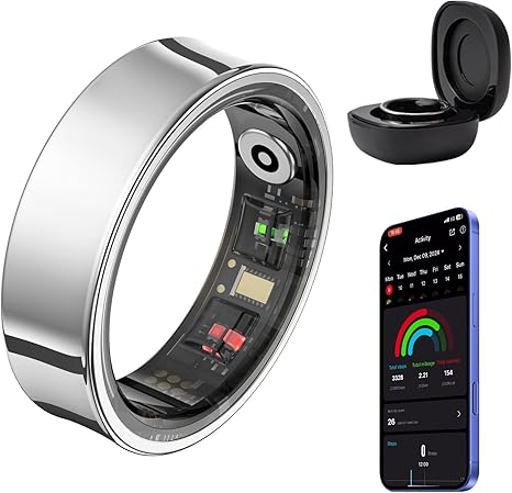 Monitors calories, steps, distance, temperature, and supports 100+ sports modes; all data is accessible in the QRing app with no subscription.
