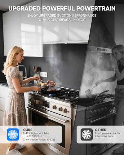 - ?Powerful 900CFM Suction?AMZCHEF 30-inch Stainless Steel Built-In Range Hood: 900CFM super suction instantly sucks away grease, smoke, steam & odors. Enjoy healthier, fresher-air cooking!
