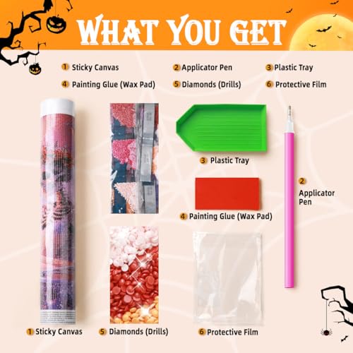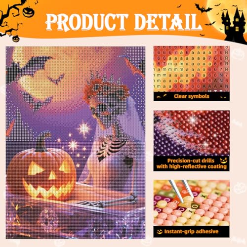 • ?Easy Crafting Experience?Includes a full set of tools (canvas, tray, diamonds, drill pen, and wax pad). Easy and intuitive operation makes it easy for even beginners. Whether adults are looking to de-stress or children are developing their hands-on skills, this unique creative experience is sure to delight. Perfect for a Halloween family activity, bring friends and family together to create this festive, crystal art diamond painting, creating unforgettable bonding time and a joyful gathering!