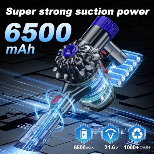 - ?Battery Parameters?V6 battery replacement Capacity: 6500mAh, Battery Type: Rechargeable lithium-ion battery, Voltage: 21.6V. Which lasts longer than the original battery and most V6 batteries on the market, and has stronger suction, providing reliable electric power for daily use. nd we are giving away 2 Pre-filter and 1 Post-filter, 1 battery dust cover, 1 Screwdriver and 2 screws.