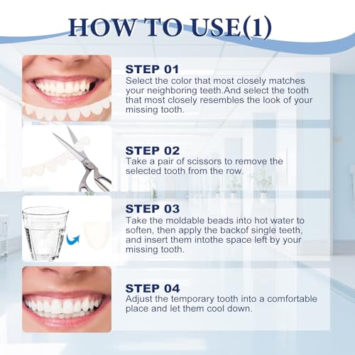 - Temporary tooth replacement :A temporary tooth repair kit with moldable thermal beads can be a convenient solution for replacing a missing or broken tooth until you can see a dentist. These kits are designed for short-term use and provide a natural-looking filler to improve aesthetics and function.