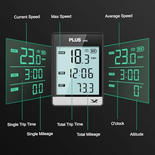 - Riding Data Display: This GPS bike odometer and speedometer supports a variety of commonly used cycling data display, riding time, riding distance, current speed, average speed, maximum speed, current time, altitude, ODO, total riding time and total mileage etc