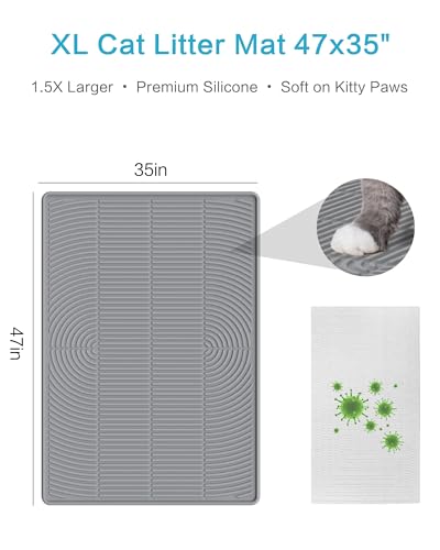 - Extra Large Cat Litter Mat (47x35in) – Maximum Coverage for Less Mess Our extra large cat litter mat provides 47×35 inches of protection, fitting under multiple litter boxes or trays. This XL litter box mat effectively prevents litter scatter and keeps your floor clean — ideal for single or multi-cat households.