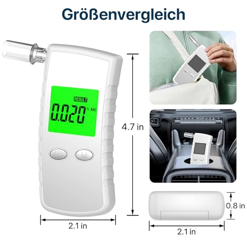 - ?Prazise Messung?Mit hochsensiblen Halbleitersensoren bietet dieser Alkoholtester genaue BAC-Werte, die auf einem klaren LCD-Bildschirm angezeigt werden. Perfekt fur den personlichen Gebrauch, Familien oder gesellschaftliche Anlasse. Fordert verantwortungsbewusstes Trinken und sorgt fur sicheres Fahren nach dem Konsum.