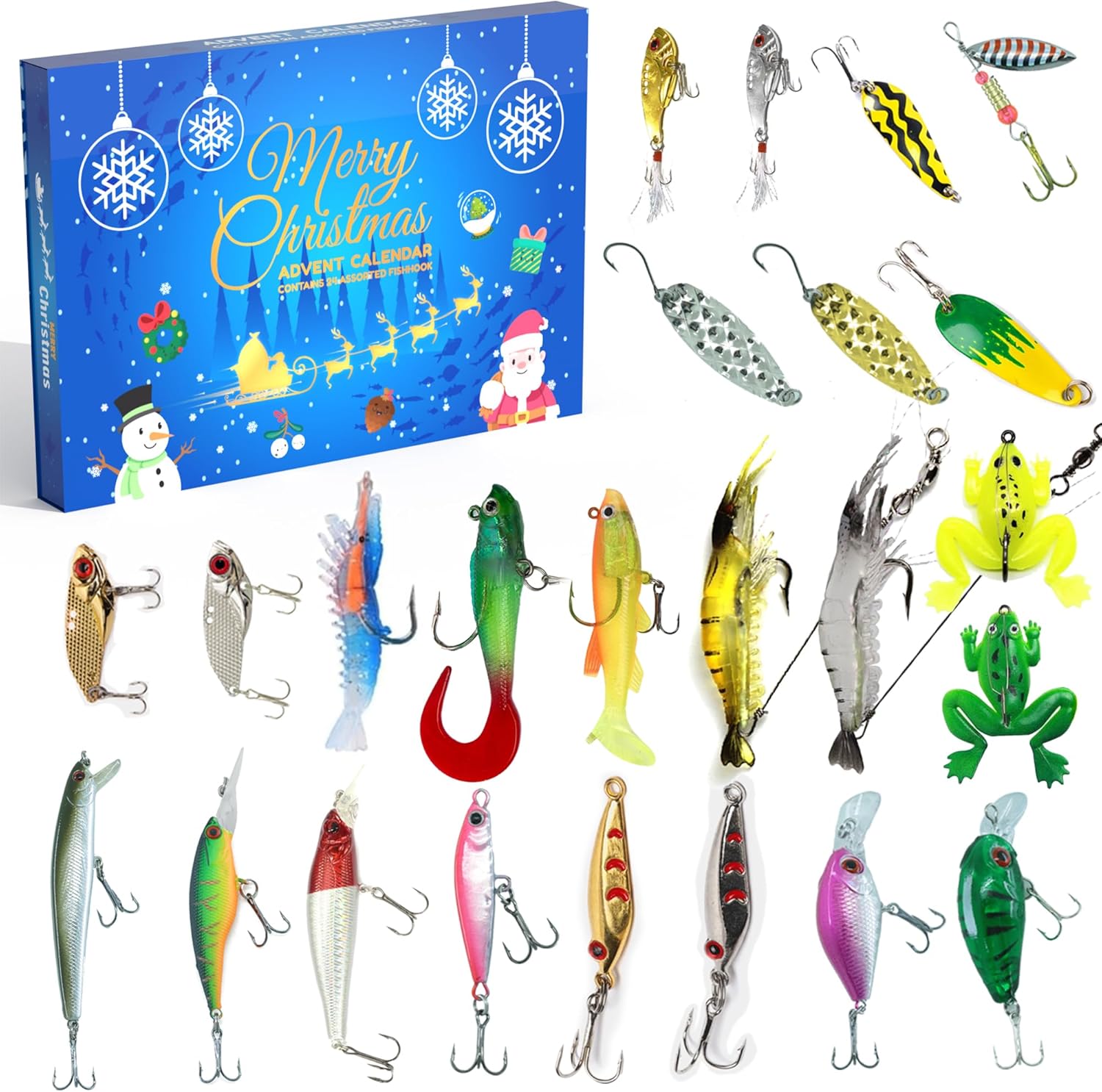 This fishing lure advent calendar is designed specifically for freshwater and saltwater fishing, making it perfect for fishing in oceans, lakes, rivers, ponds, or streams. Whether you are a beginner or an experienced angler, this set can help you catch bass, trout, salmon, pike, catfish, and more.
