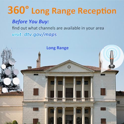 - 360?Reception: Our Digital Antenna for TV adopts upgraded Smart IC Chip,Smart IC chip can receive signals 360? and filter out cellular and FM signals,receives TV broadcasts including 4K,UHD and 1080 HDTV for highest-quality picture and sound.Compared to other indoor tv antenna that can only receive signals in one direction, HDTV Antenna Indoor is more convenient and effective in use