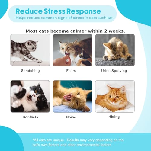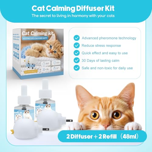 - Long-lasting Protection: Product includes:Diffuser*2 and Refill*2, each pheromone refill can continuously release cat pheromones for up to 30 days. This makes it easier to set up a relaxing environment throughout your home–even with multiple cats.