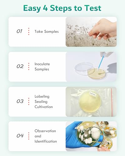 • ?Complete Kit for Thorough Testing?Includes 12 test plates, swabs, label sheets, test gloves, and a detailed mold identification guide. Everything you need for accurate and effective mold testing at home.