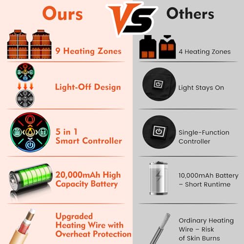 • ?ONE-YEAR WARRANTY & WORRY-FREE PURCHASE?Enjoy peace of mind with our 1-year quality assurance. Our heated vest combines comfort, durability, and smart features–designed to deliver maximum satisfaction. Reach out to us anytime for support!