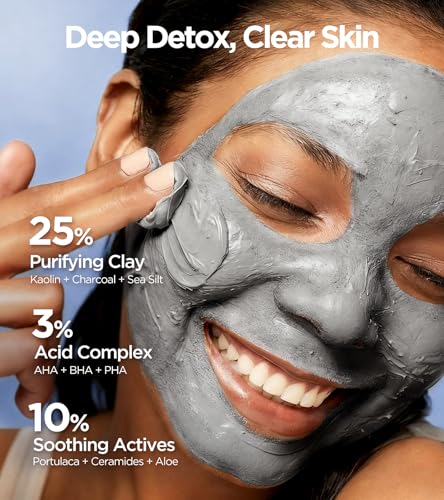 - Deep Pore-Resetting Clean without Tightness: Tried every pore cleaner face mask but still dealing with oily, clogged skin? Stop skimming, go deep! Glide on our carefully balanced 25% mud blend–kaolin, activated charcoal, and sea mud–sweeps through every pore to lift dirt and oil, while a gentle acid complex refines and smooths. Worried about over-cleansing? A 10% soothing complex calms and replenishes, leaving skin soft, balanced, and never tight. Every pore wakes up alive, your skin exhales in relief, and flashes the deep, vibrant clean it’s been begging for.