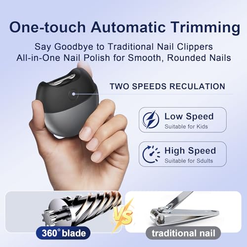 - [Easy Cleaning with Built-in Nail Clipping Collection] The electric nail clipper features a built-in clipping collection bin that effectively collects nail debris generated during trimming. Simply press a button to easily empty the clippings, keeping your manicure tools neat and hygienic.
