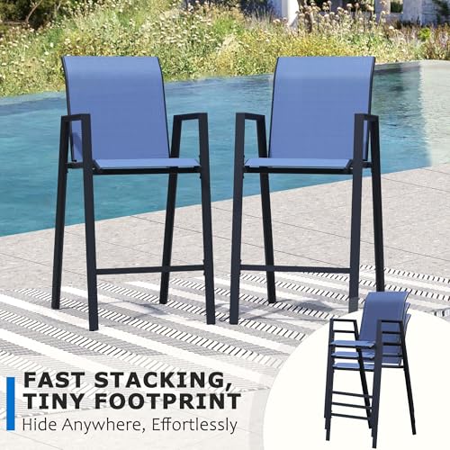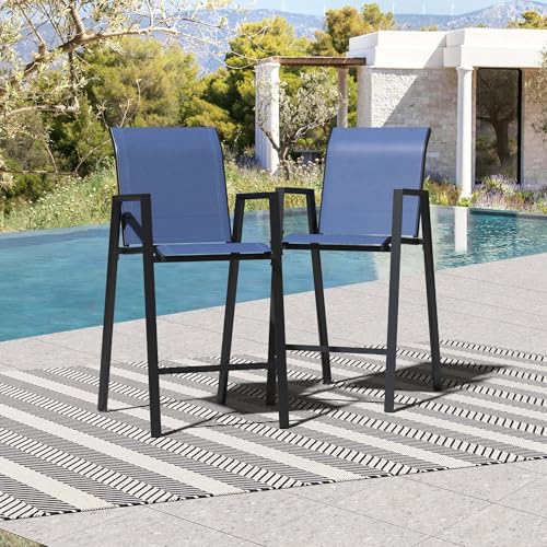 - Suitable for All Weather Conditions: The frame of these patio bar stools is constructed from a more robust iron material, and it has an additional waterproof coating on the exterior. The fabric of the outdoor bar stools is made of breathable textilene sling material, which is excellent at absorbing sweat.