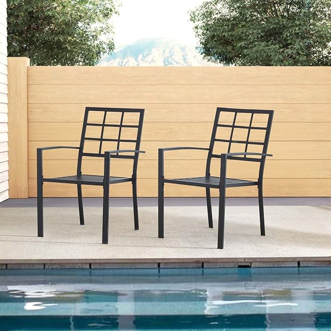 Stackable for Space-Saving Storage: Easily stack these outdoor dining chairs to save room when not in use, ideal for compact patios, balconies, or off-season storage.