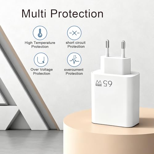 • 3.Fast Chargin: USB-C and USB-A ports, PD 65W and QC 3.0 support fast charging, which can adapt to different currents according to different devices, ensuring voltage stability and safety while charging devices quickly.