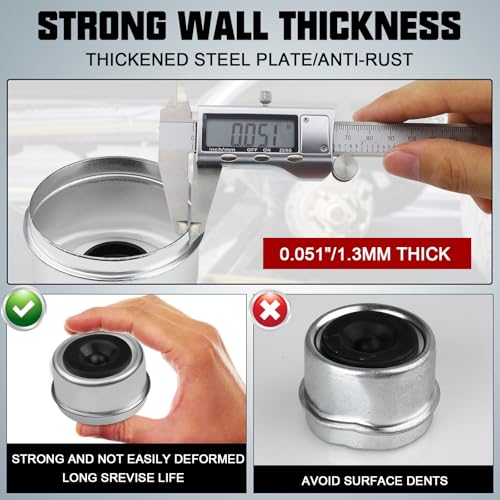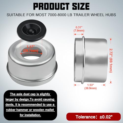 - ?Heavy Duty Materials?:This trailer dust cover kit is made of high-quality carbon steel and rubber. The metal dust cap are sturdy, resistant to deformation, and feature a galvanized surface for corrosion and rust resistance. The matching grease rubber plug is compatible with a metal dust cup, effectively preventing grease leakage and extending the use time.