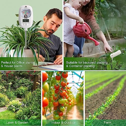 - Effective Probe Based On 3 Metals: The soil pH tester has been with 3 kinds of quality metal material, which is accurate, strong, and durable for long-term use, length of about 6.8″ and can be used for medium to large potted plants. it can analyze the soil more quickly, get to know the plant soil condition, and obtain more accurate data, furthermore, single probe design plant water meter is less harmful to the plant root system and won’t bring out more soil of the plants after the test.