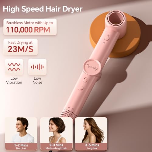 - 3x Faster Drying: Save Time On Busy Days. Rushing mornings, post-work touch-ups, or last-minute plans? Its 110,000 RPM brushless motor blasts 23 m/s airflow–3x faster than traditional dryers, cutting drying time in half (short hair 2 mins, long hair 5 mins). It reduces heat damage, leaving hair smooth, frizz-free, and shiny–perfect for busy schedules needing quick, polished looks.