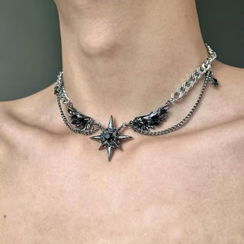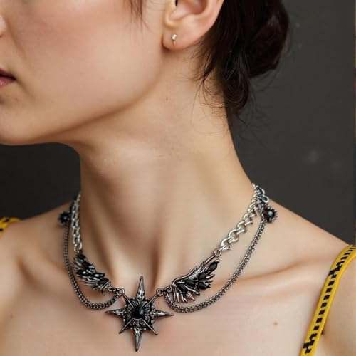 • Edgy Design: This unisex necklace features a dark, gothic style with a winged star pendant and chain links for an eye-catching look