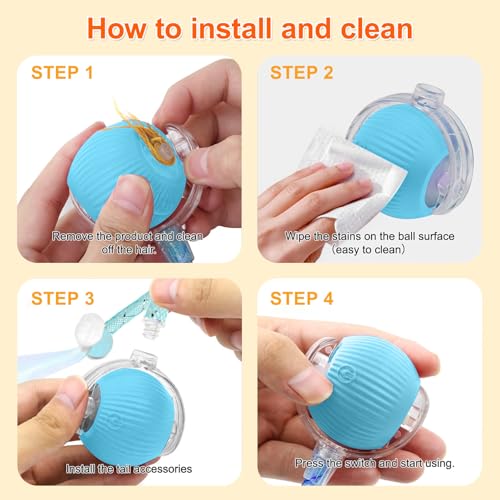• ? Safe Materials: The interactive cat ball toy features a premium silicone surface that’s durable, bite-resistant, and easy to clean. Simply wipe with a damp cloth to maintain hygiene. Powered by a strong motor, it moves swiftly across thick carpets, thin rugs, or hard floors.