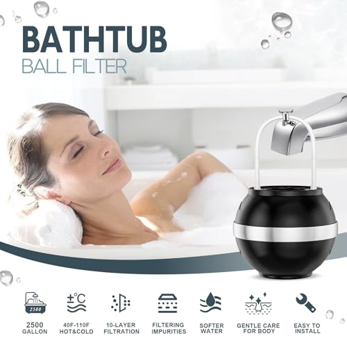 • JYFJYF Bath Filter for Tub Faucet – 10 Stages Bath Water Filter 2,500 Gallons, Removes Contaminants & pH Balancer, Improved Skin, Hair, and Nail Condition – BPA-Free & Easy Install (Black)