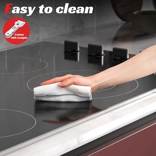 - ?Electric Cooktop 30 inch with Glass Protection Metal Frame?Different from other electric radiant cooktop, the 30” electric cooktop has added metal frame which can prevent the glass from being broken due to excessive collision and prolong the life of the electric stovetop. The stylish and elegant silver metal frame not only protects the glass, but also makes the knob electric stove look better overall. Drop-in electric cooktop fits perfectly into every cabinet.
