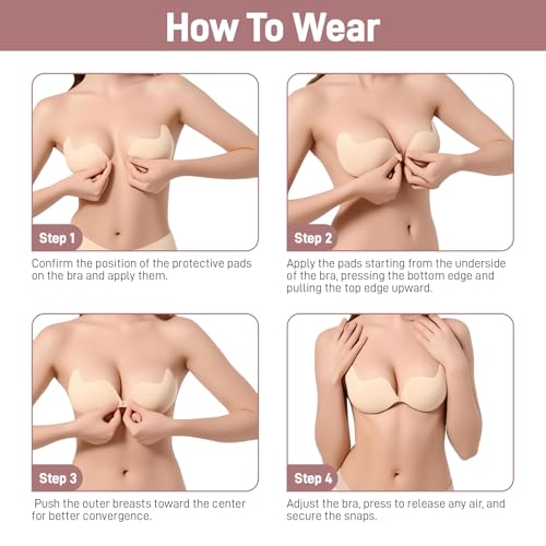 • ??Starke Haftung?Der klebe bh verfugt uber einen starken Klebstoff, der wasser und schweissfest ist. Er sitzt auch im heissen Sommer fest auf der Haut, ohne dass er herunterfallt. Der sticky bra verfugt uber passende Brustwarzenschutzer und transparente Lifting-Sticker. Die Lifting-Sticker konnen am oberen Teil des klebe-bh angebracht werden, um die Bruste anzuheben, an den Seiten, um das Problem der seitlichen Bruste zu losen, und am unteren Teil, um ein Herunterfallen des BH zu verhindern.