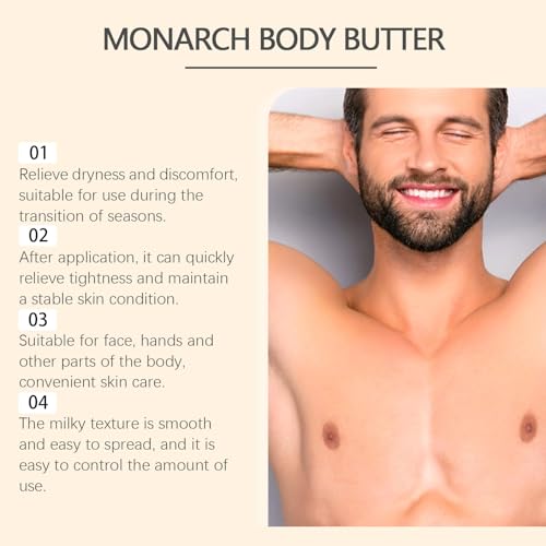 • ?Long-Lasting Masculine Scent?This body lotion is specially designed for men, skillfully combining unique fragrance with skincare benefits. Infused with a premium woody-spicy pheromone fragrance, it allows your skin to be immersed in a rich scent that lingers for hours. There’s no need for extra cologne–this body butter for men keeps you smelling fresh, confident, and effortlessly masculine all day long. At the same time, it delivers intensive moisturization and nourishment to the skin, leaving it smooth and delicate.