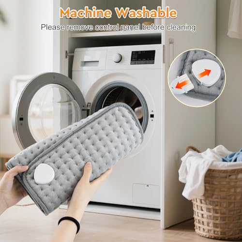 - Easy to Clean & Maintain: Back heating pad can be machine washed after removing the controller or it can be spot cleaned with a damp towel and mild detergent. Note: The controller cannot be immersed in water, so please remove it before cleaning. Due to the built-in heating wire, do not machine wash frequently. Do not tumble dry or iron at high temperature. Make sure the heating pad for back pain relief is completely dry before using it again