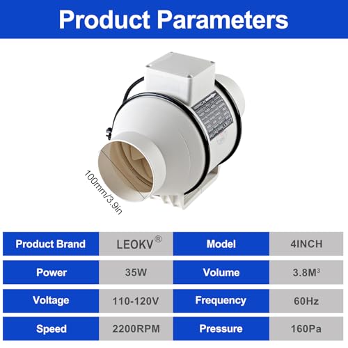 LEOKV 4 Inch Exhaust fan Pipeline booster fan