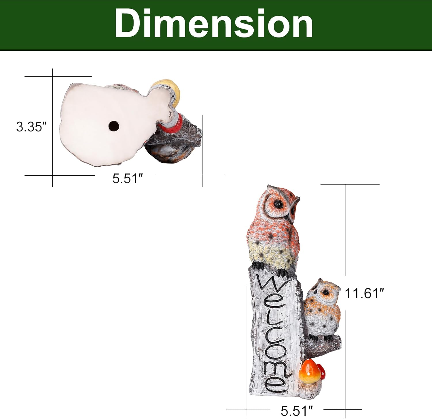 Measuring 5.5” in length, 3.35” in width, and 11.6” in height, this owl statue is large enough to make an impact yet lightweight for easy placement. It serves as both a charming welcome for guests and an effective decoy to discourage squirrels and unwanted birds from disturbing your garden.