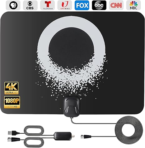 The Yonquora TV Antenna offers wide channel access including ABC, CBS, NBC, and more in 4K and 1080p. It features a detachable low-noise amplifier, a 16.4ft coaxial cable for optimal placement, and a high-gain multi-directional design. Easy to install, it ensures clear, stable signals even in bad weather.
