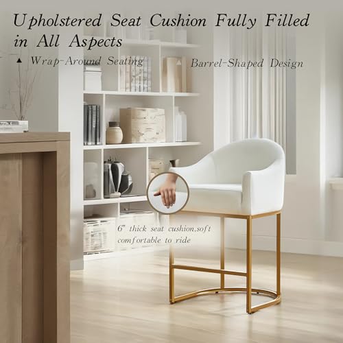 - [Barrel Shape Modern Design]:The counter stool adopts a bucket shaped bathtub design, with a round back contour reflecting classic charm and modern style. In addition, bucket shaped cushions surround your body, giving your back a feeling of being surrounded and wrapped, providing a better seating experience.