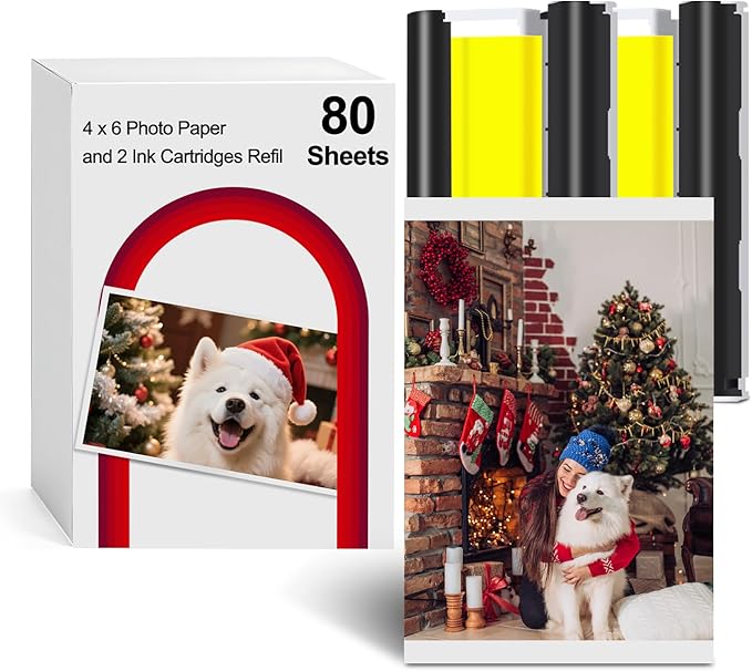 Package Included Compatible with Amber M100/M200 4×6 Photo Printer. Includes 2 color ink cartridges and 80 sheets of 4×6 glossy photo paper. Postcard size: 100 x 148 mm 4″ x 6″.