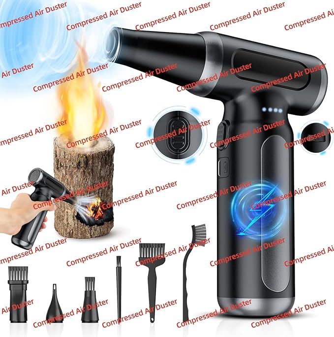 Eco-Friendly & Long-Lasting – 10,000 mAh rechargeable battery with USB-Type C charging offers temperature, current, and short-circuit protection—replacing disposable canned air for a sustainable, cost-saving solution.