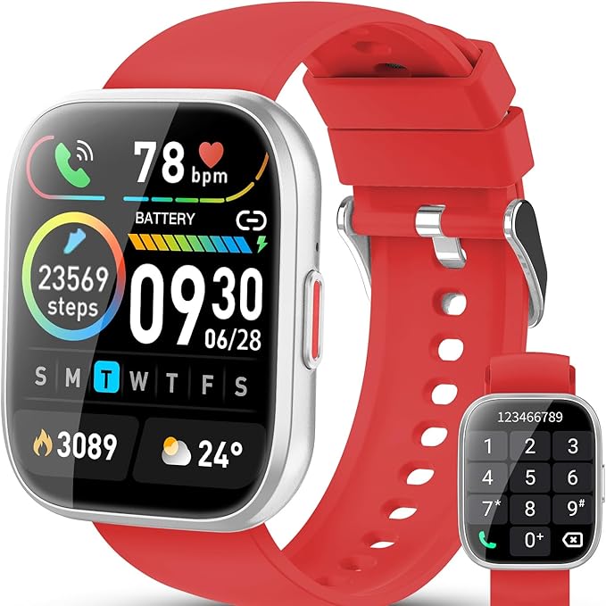 Smart Watch for Men & Women: Stylish smartwatch designed for both men and women, combining modern functionality with a sleek red finish.
