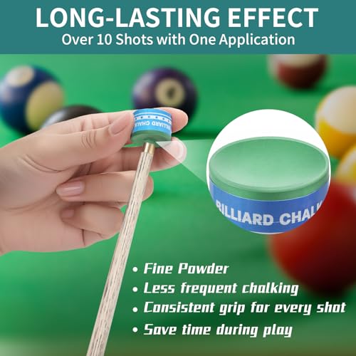 - Durable and Long-Lasting: Engineered to last over 10 shots per application, unlike ordinary billiard chalk that needs to be replaced frequently. Billiard chalk is not easy to break and perfect for large tournaments and ensure consistent performance