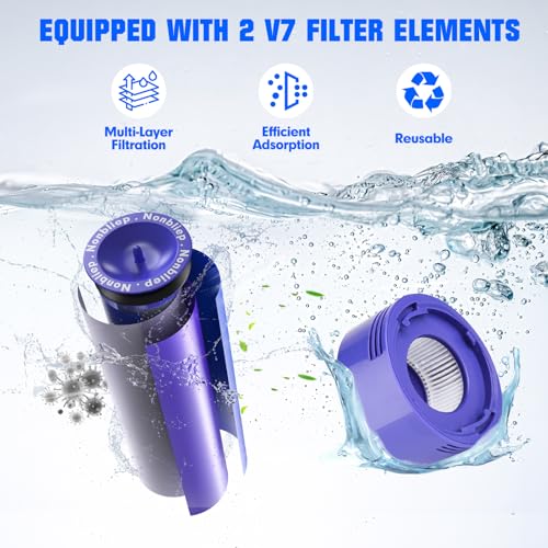 - ?What You Get and Service Support?Products include 1*V7 replacement battery, 1*battery dust cover, 1*screwdriver, 3*screws, 1*Pre-filter and 1*Post-filter. Which will save you a lot of money. Please contact us via Amazon message for warranty information. Welcome to share your feelings with us.