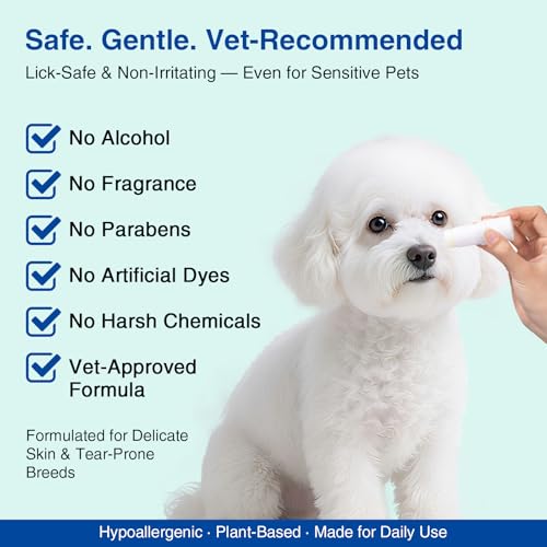 - EFFECTIVE TEAR STAIN REMOVAL:Gently removes existing tear stains and discoloration around the eyes, nose, and mouth area. See visible results after just a few uses — perfect for white or light-colored breeds like Maltese, Poodle, and Shih Tzu
