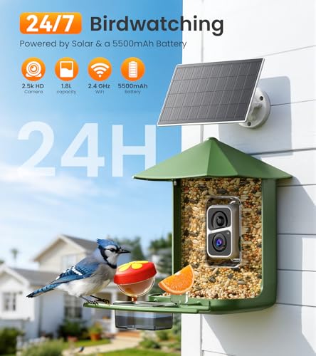 - 2.5K HD PANORAMIC BIRDWATCHING: Never miss a detail with this smart bird feeder camera, delivering stunning 2.5K HD clarity and an extra-wide 170? field of view that captures your entire backyard sanctuary. It’s your 24/7 window into a world of birdsong and wonder, from anywhere.