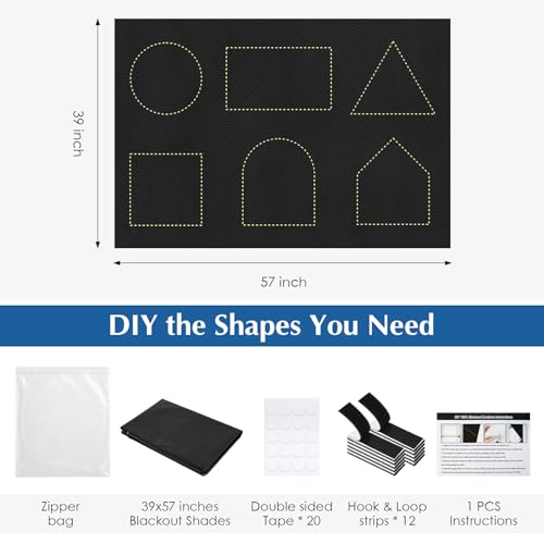 • ?Cut to Any Size?No drill blackout blinds and Easy to install within minutes. This removable blackout window cover is not like usual curtain, it can be easily cut to any shapes you need. Prefect suited for skylights, curved windows, casement windows, sliding windows, bay windows. It’s better to cut the window blackout cover oversized compared to the window to minimize the light entering.
