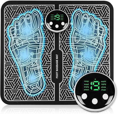 A 2-in-1 EMS foot massager and body massage pad with a waterproof PU leather surface and non-slip rubber bottom for durability. The body massage pad can also be used on shoulders, calves, and other areas either with the foot pad or independently.
