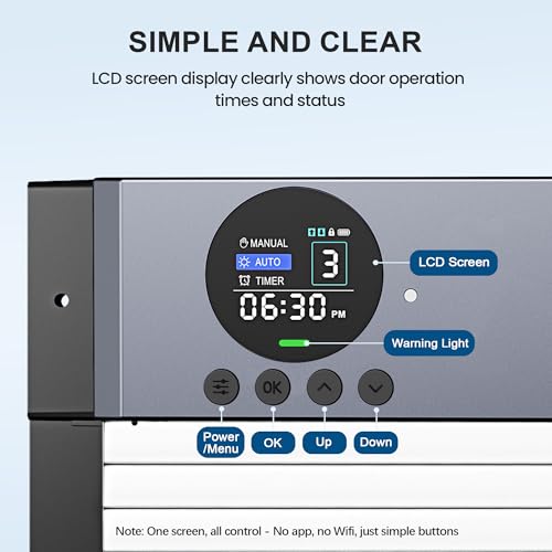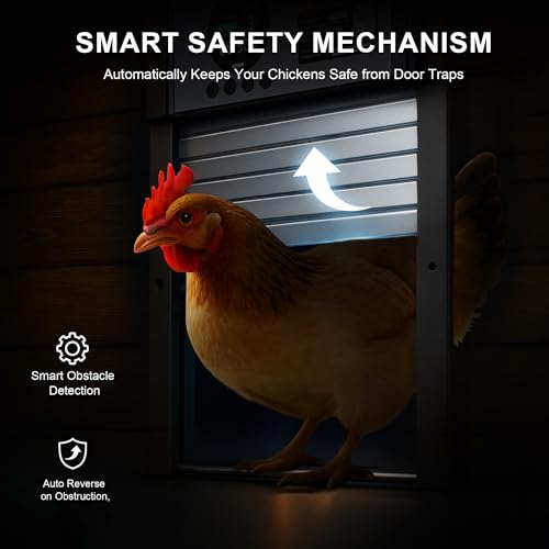 - [Automation at Dawn & Dusk] No more rushing out in the cold or staying up late — this smart chicken coop door opens and closes automatically using a light sensor. Keep your flock on schedule with fully hands-free operation