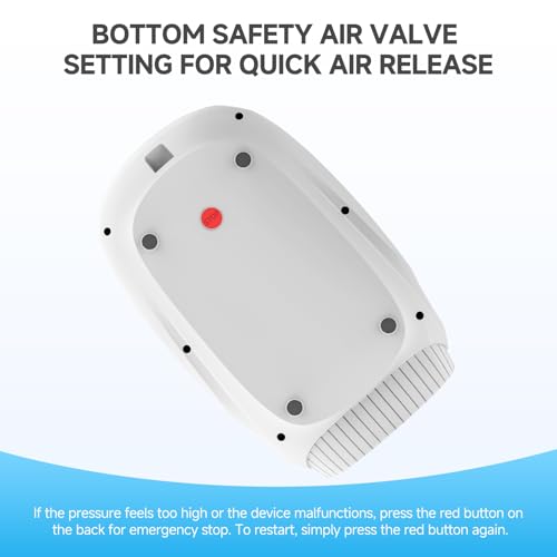 • Soothing Heat & Safety Release Valve: Equipped with 4 precise temperature settings (Off, Low, Medium, High), this hand massager with heat delivers soothing warmth to hands and joints. The therapeutic heat helps relax muscles, improve circulation, and enhance compression massage effectiveness. For added safety, a quick-release valve allows immediate pressure release by pressing the red button on the back, press it again to restart the device.