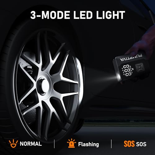 - Multi-Functional Emergency Air Compressor: This air pump is not just for inflating; it’s also a multifunctional emergency tool. It features an LED light with 3 modes (General, SOS, Flashing) that can be used for lighting in the dark, changing tires, or during car breakdowns and emergencies, adding security to your journey.