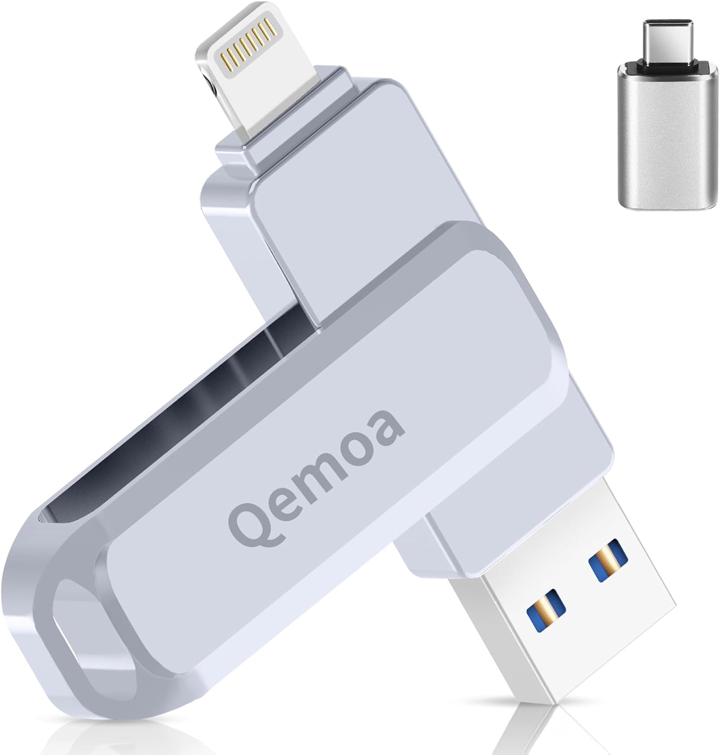 With USB, Lightning, and Type-C ports, it allows one-click transfers across iPhones, iPads, Android, and computers. The 64GB capacity solves memory issues, storing videos, selfies, and important files easily.