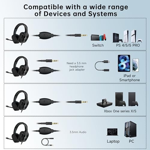 - ?Strong Compatibility?:PC gaming headset with mic compatible with PC, Mac, Windows, Laptop, PS5, PS5pro, PS4, Xbox series X, Xbox series S, Xbox One,Smartphones,Steam Deck,Rog Ally,Tablet and more.
