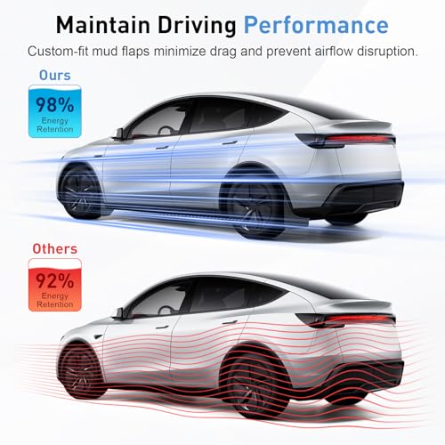 • ?Aerodynamic & Safe Clearance?Unlike bulky aftermarket flaps that scrape on speed bumps or ruin the sleek Tesla look, SAFOTAD guards are engineered with Tesla’s aerodynamics in mind. Their low-profile curve preserves safe ground clearance while guiding airflow smoothly around the wheel wells. This means no drag, no unnecessary noise, and no risk of scraping when entering driveways or parking ramps. You get the protection you need while keeping the futuristic Tesla silhouette intact.